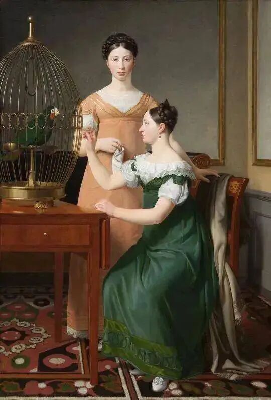 贵妇人坐在椅子上喂鹦鹉🦜,女佣眼神看起来有点伤感,她呆呆地站在旁边,陪着主人逗乐子,随时听候吩咐!这就是上层和底层的差距,这位画家只是那么随意一画,其实就是在告诉我们社会的贫富不均问题!