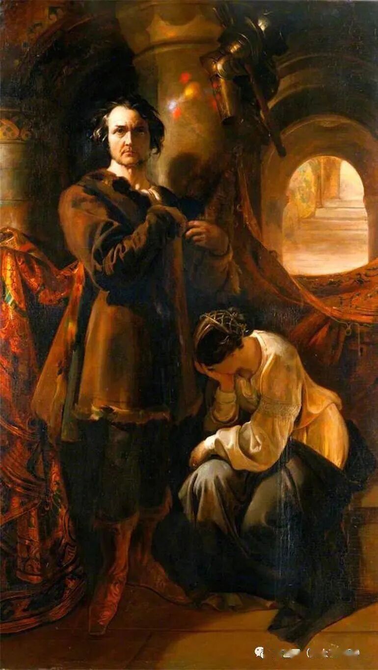 丹尼尔·麦克利斯,19世纪爱尔兰最杰出的历史画家、文学和肖像画家以及插画家,由于他的创作生涯主要在伦敦,所以称他为英国画家!他的创作题材除了历史肖像画,还有就是莎士比亚剧本中的一些戏剧场景!