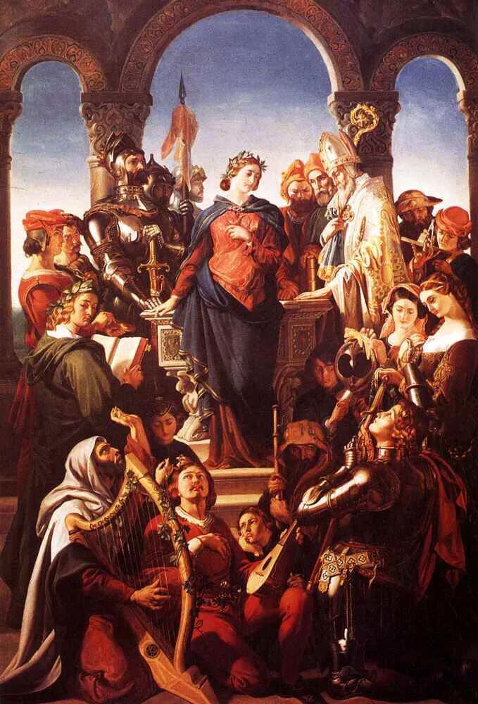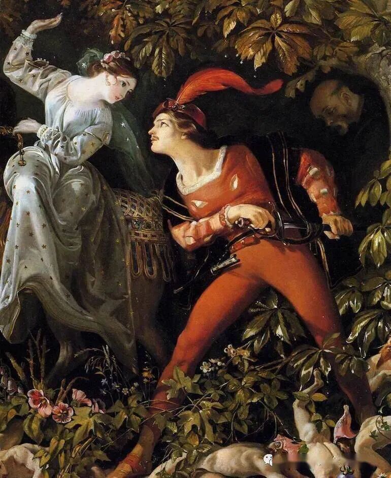 这幅画非常有故事情节,场景充满戏剧性,姑娘骑马逃走时,这命骑士追赶正要拔剑,但是被对方的美貌吸引了,一时下不了手!四目相对,说不定会一见钟情!
