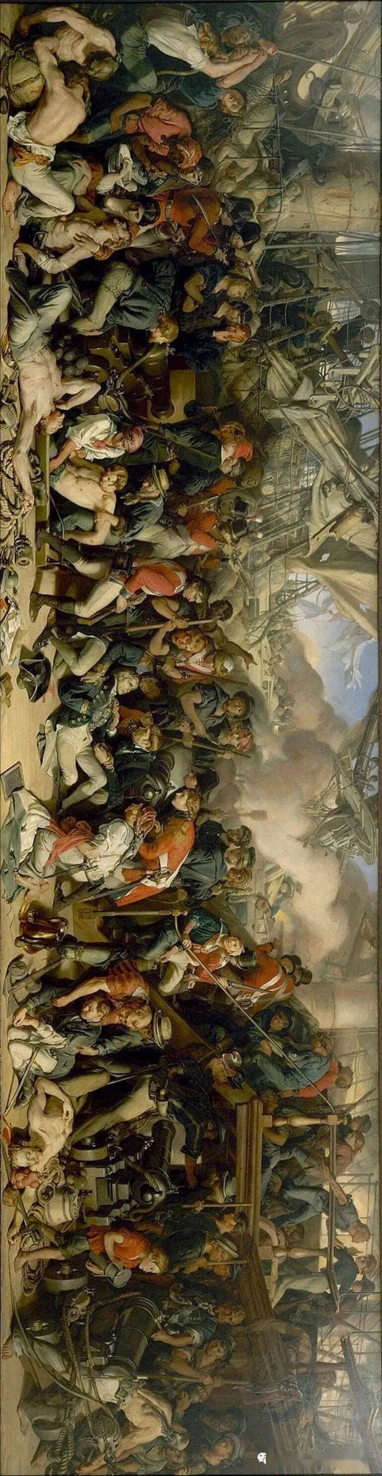 最后一幅是巨型油画,战争惨烈,伤亡惨重,付出了血的代价,画家把在场的每一位士兵、将军,还有妻儿等,都刻画得栩栩如生,足见画家高超的画技和对人物的驾奴能力!