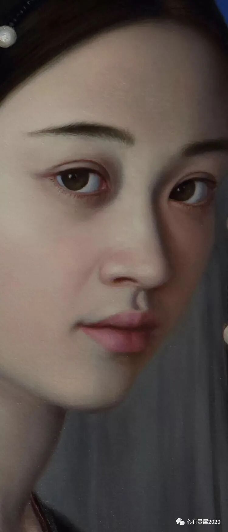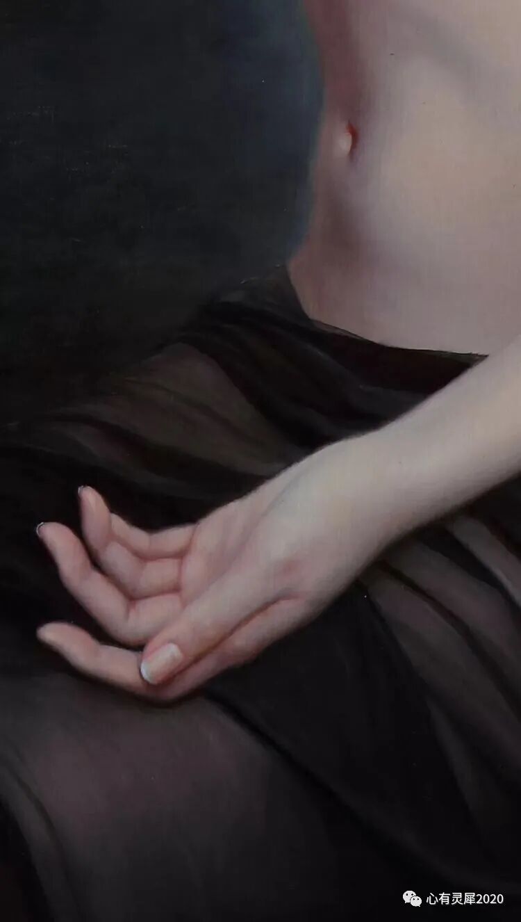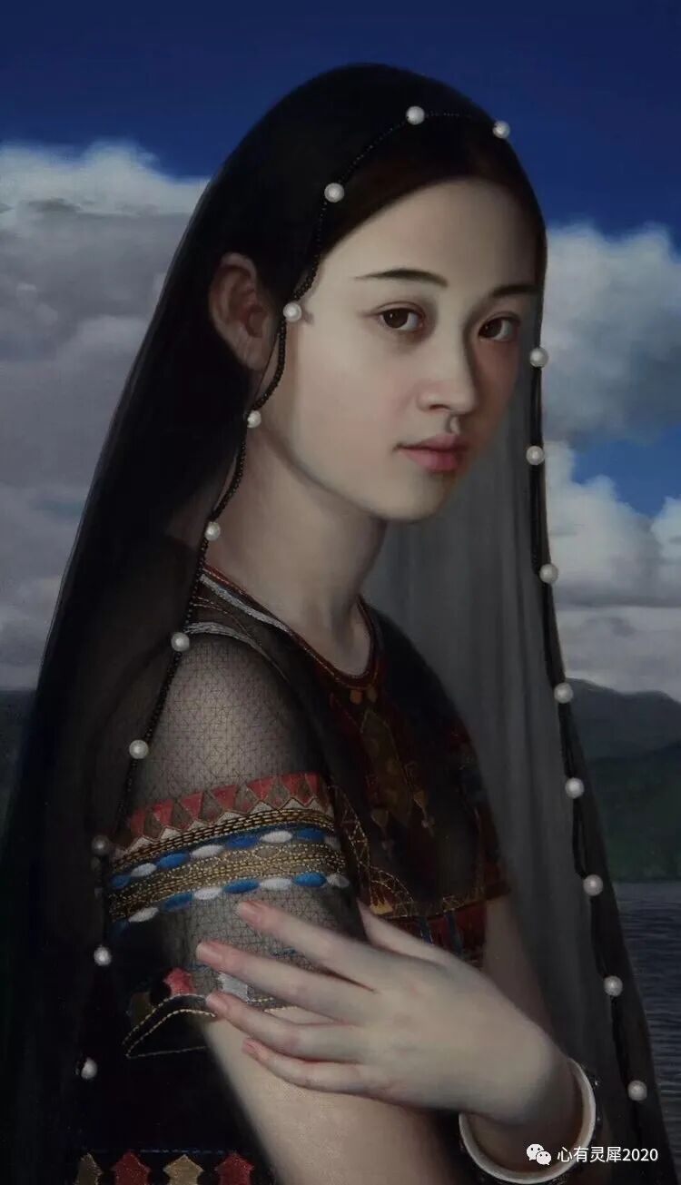 他画作中的少女在广阔的空间中,显得超脱静谧,散发出冷艳、恬淡、寡然、雅致,如玉石一般的空灵气息,带给观赏者视觉和心灵的震撼!