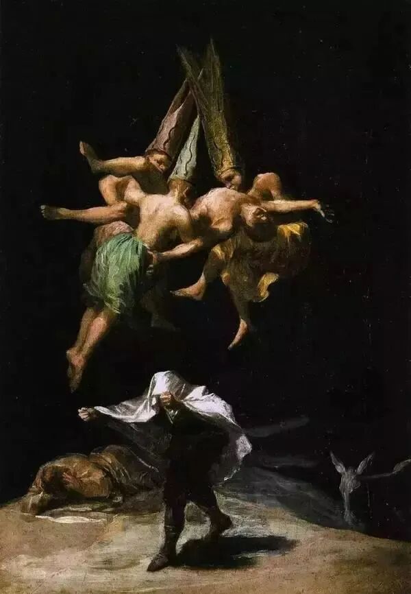 《空中的女巫》,这类阴暗恐怖的作品,可能跟他的人生轨迹有关!他曾两次身患绝症,虽暂时熬过了病痛,但落下了耳聋的顽疾,他听不到世间的任何声音,那年才46岁!而且他身边的亲人也一个个离他而去!他所处于的年代,也是风起云涌,处于革命的风口浪尖,在这样的境遇中,他唯有在画笔下倾诉自己的忧思!