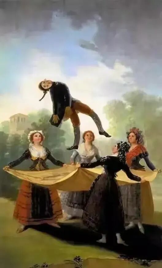 《洋伞》,寓意遮风挡雨、遮天蔽日,这幅画是戈雅所有作品中最充满阳光的,也是最浪漫诗意的!那时候的画家还很年轻,寄托了他对未来所有的美好思想和愿望!但仅仅只是理想,现实是残酷无情的,它会慢慢摧毁你……