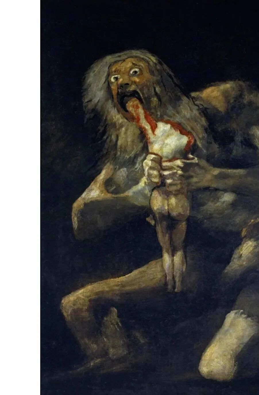 以阴暗恐怖而闻名于世的世界名画《克罗诺斯吞噬其子》,画面只是一个神话,大家只需知道就行,不要害怕!