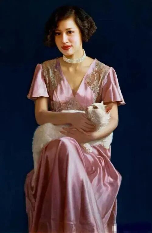东洋人的服饰,中国的田园猫,古典的小脚鞋,中西合璧,人物有一种独特的气质!想起一首歌《中国心》:“洋虽然穿在身,我的心依然是中国心……”、血脉相连,不可改变!