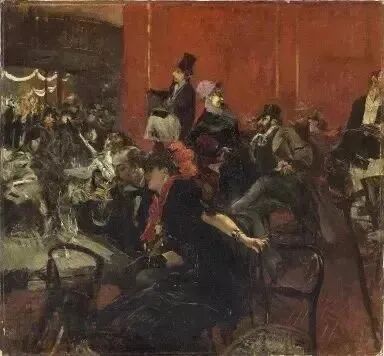 这些走路都带风的巴黎女性,裙裾飞扬,忙着出入于各种社交场所,在画家画笔下,显得格外引人注目!
