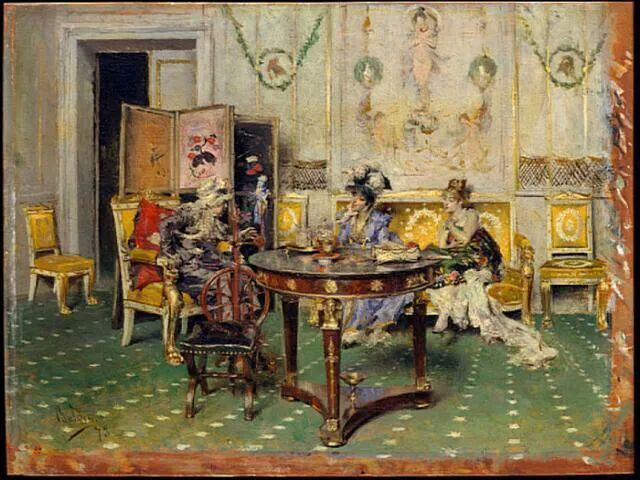 也许当时的画家就混迹在他们中间,艺术家创作需要灵感,只有融入这些时尚女性的生活圈,才能在画笔下更好地呈现她们的喜怒哀乐和情绪情感!