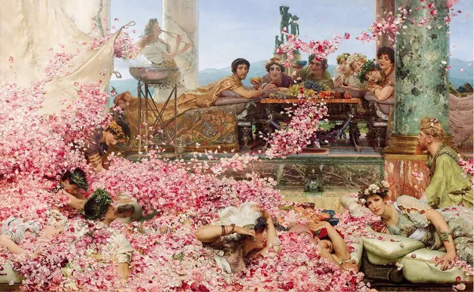 描绘罗马帝国奢侈生活的还有这幅《赫利奥加巴卢斯的玫瑰》,由英国维多利亚时代的劳伦斯·阿尔玛·塔德马爵士创作,描绘了君皇和后宫妃子们以玫瑰取乐的场面!据说这次的玫瑰,很多人被埋在下面窒息而死,而这位皇帝竟然无动于衷,反而越来越兴奋,可见其糜烂到了什么程度!