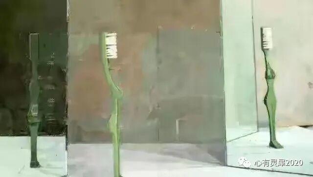 最令人啼笑皆非的是乌格罗通过镜面反射,用一支牙膏创作了名为《美惠三女神》的作品。刚开始笔者以为是三支牙膏,这幅画的奇妙之处就在于利用了镜子的反射效果,而且这牙膏的形状像极了一位凹凸有致的,有着玲珑曲线的小女子!