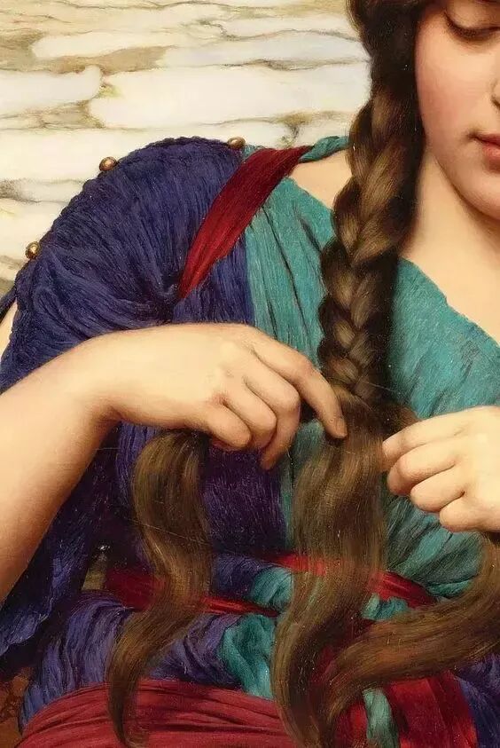 欣赏这幅画,就会想起那首乡村歌曲🎵“村里有个姑娘叫小芳,她的辫子粗又长”!头发多不是啥好事,容易有烦恼,你看这位姑娘,她不是没事编辫子,而是明显有很多小心思,但又一时找不到倾诉的对象!