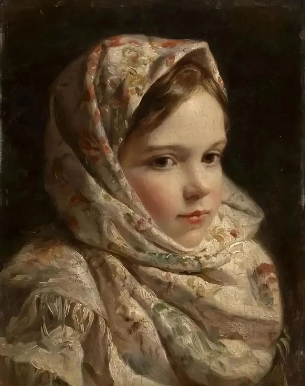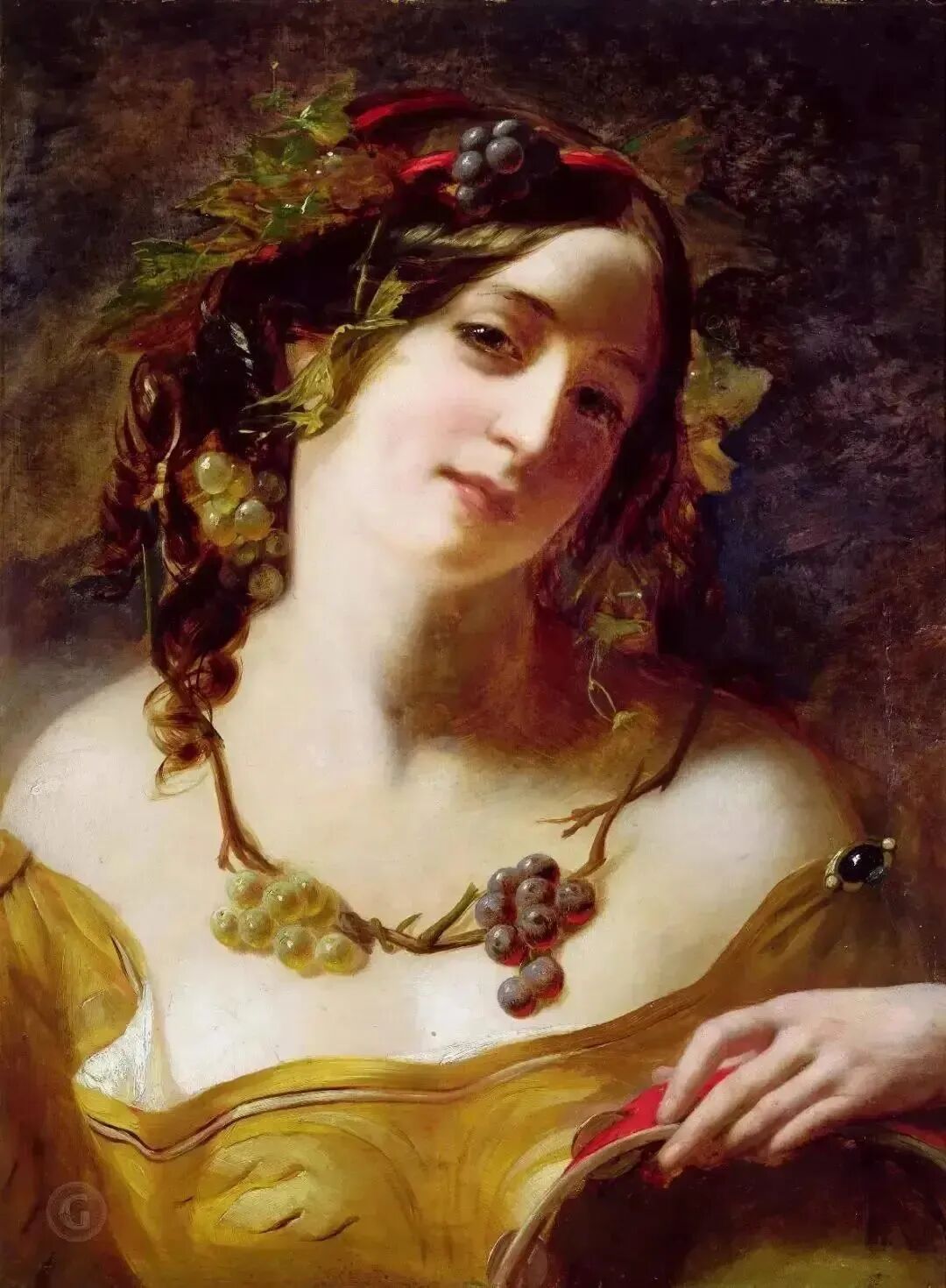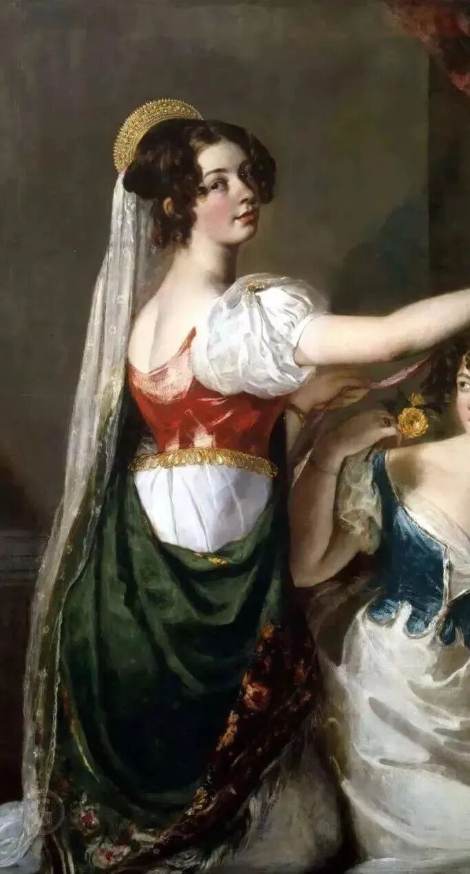 感觉这幅画最出镜,无论是服饰、头饰、首饰的色彩搭配,和谐而互相融合,和女孩白皙细嫩的肤色互相媲美!