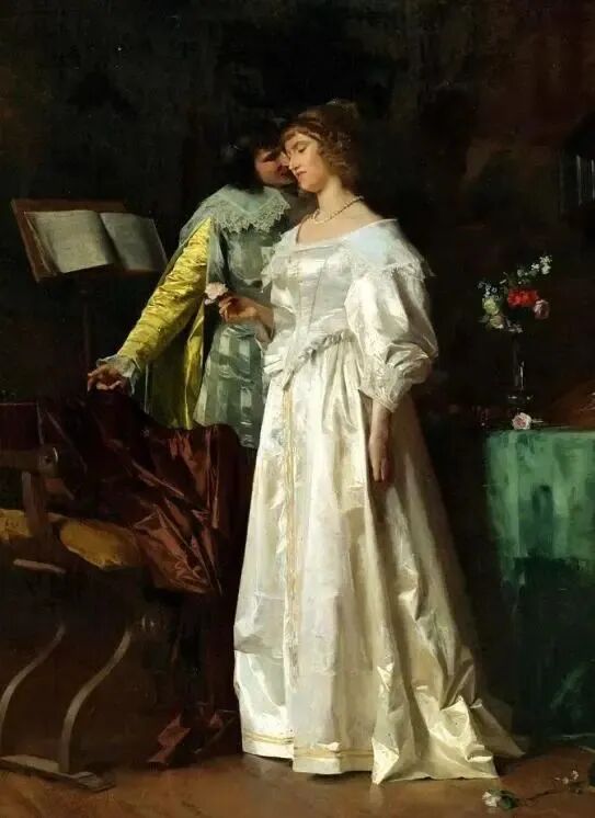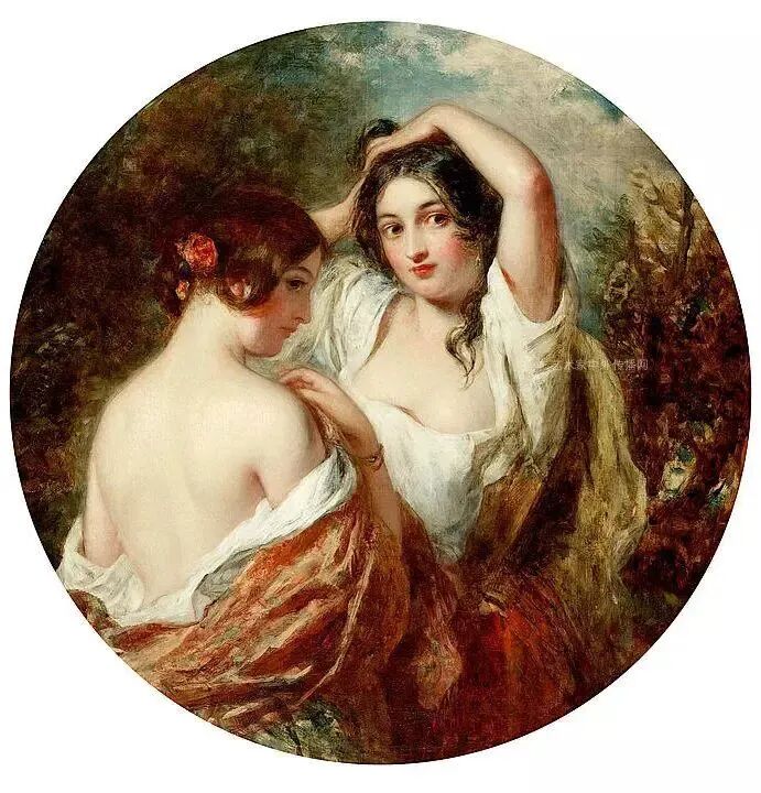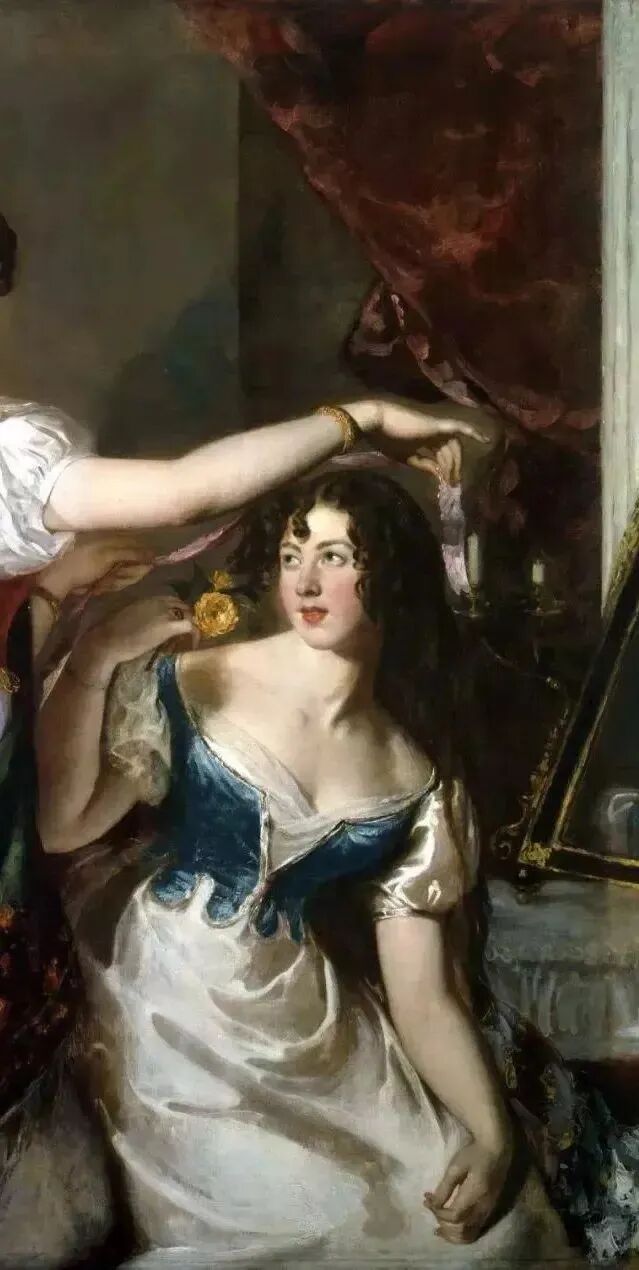 《准备参加奇装异服的舞会》,这是姐妹俩一起梳妆打扮,准备参加舞会的场景!这一对大户人家的姐妹花本来就很美,再加上画家的点晴之笔,那更是锦上添花,举手投足充满了青春活力,和对美好生活的憧憬和希望!