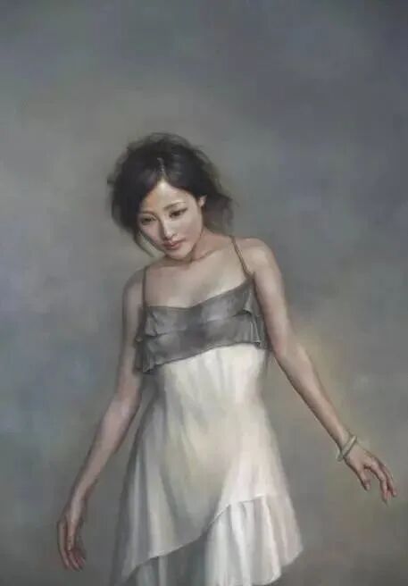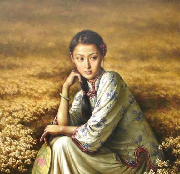 这幅画的场景非常熟悉,似乎跟画家谢楚余画笔下的女孩形象非常相似!