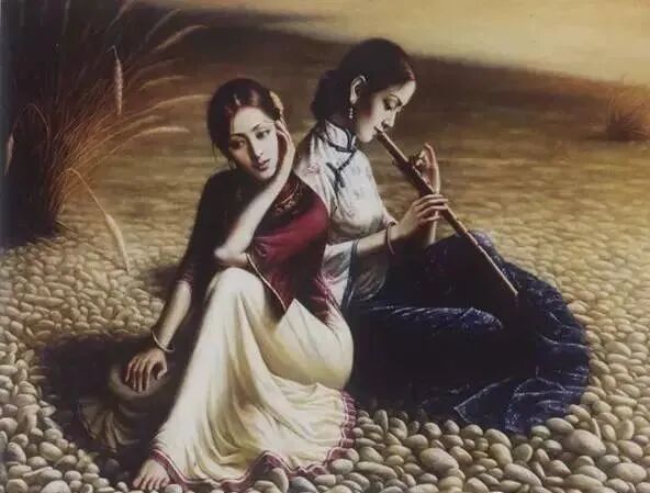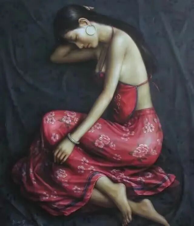 这是画家谢楚于创作的两幅画,大体形态相似,从背景、色彩、构图或者人物情绪等方面,大家看看哪一幅最出色!