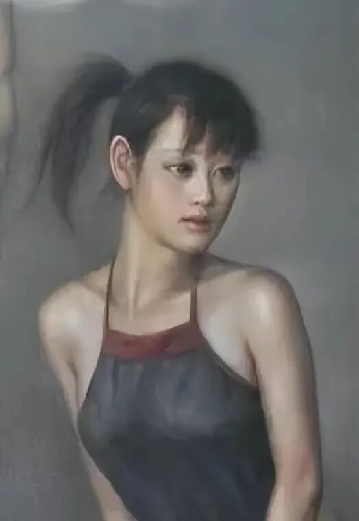 而第二幅显然已经走出迷茫!女孩高高扎起来的马尾,看起来清爽又干净,整幅人物形象洋溢着青春活力!这肤色和灰色的背景,和少女转头回眸的姿态,一下子就让人产生身临其境之感!