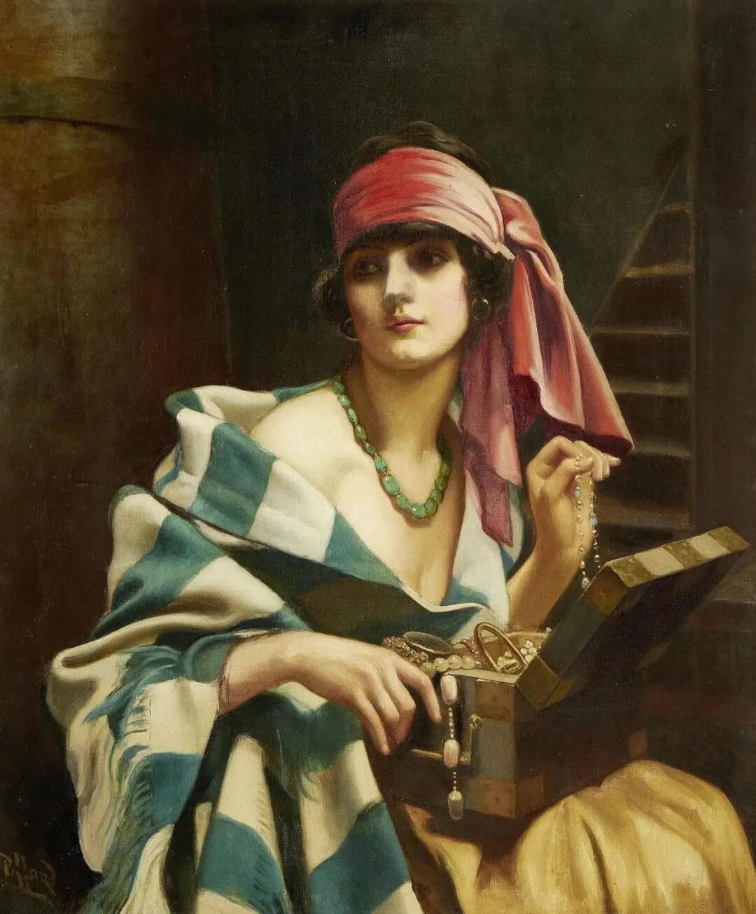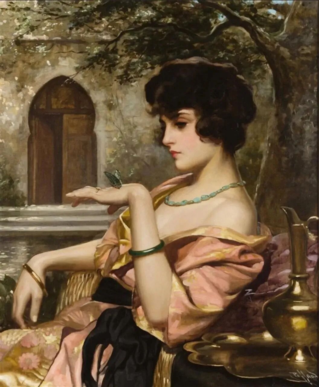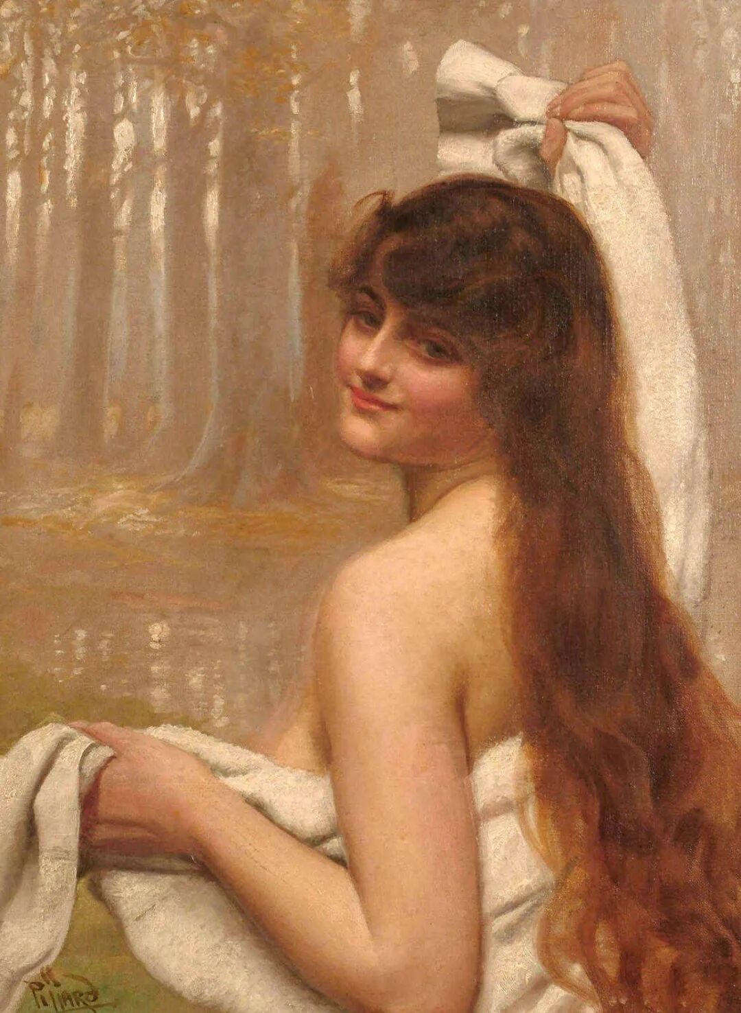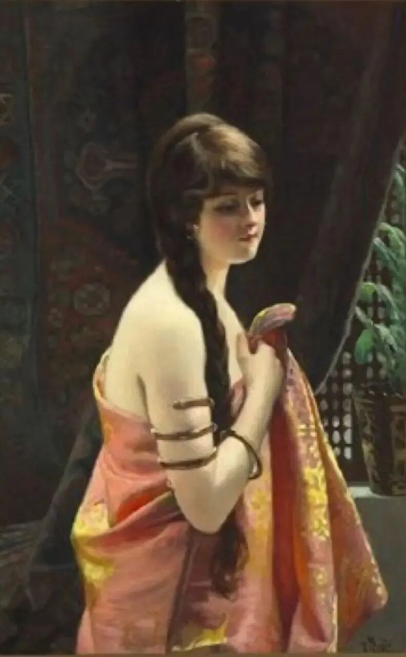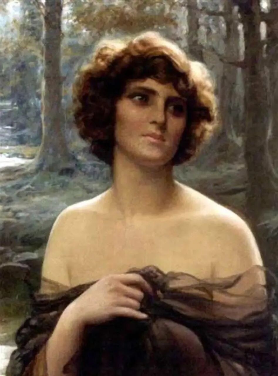 感觉画家最善解人意,他最能理解女人什么时候最风情万种千娇百媚,如上面这幅森林里小溪旁的女人!这微微一笑,可以说是倾国倾城国色天香!如一朵含苞欲放的牡丹花,不知道会花落谁家!