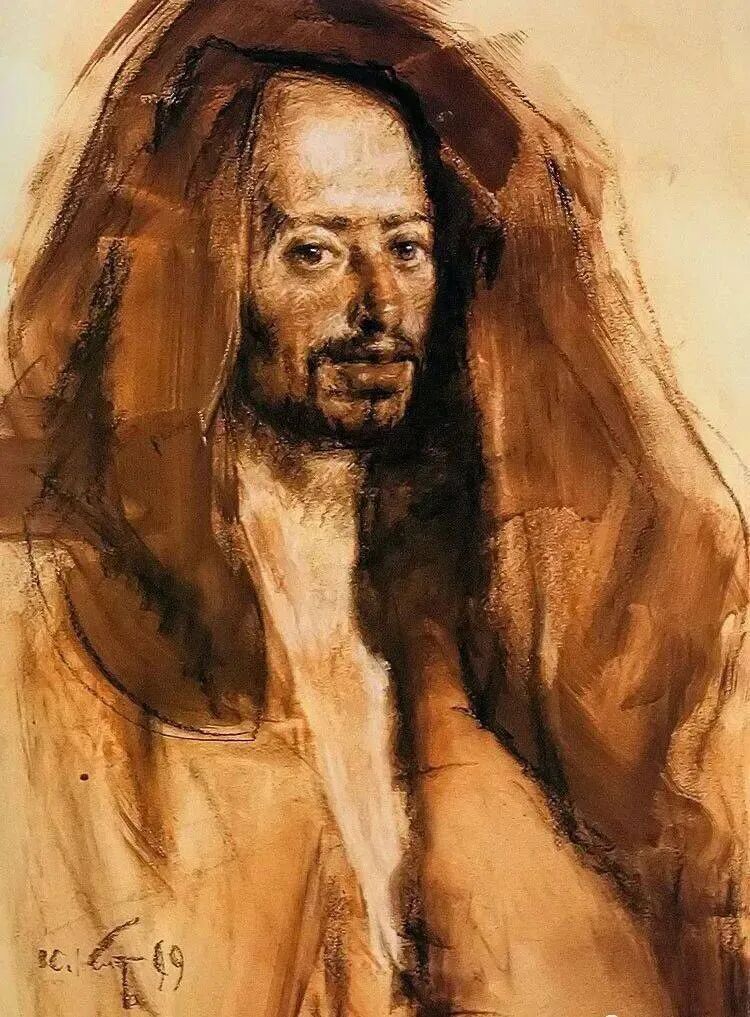 这是艺术家自画像,不看不知道,一看真是吓了我一跳,真的很有个性,估计其作品也是别具一格!