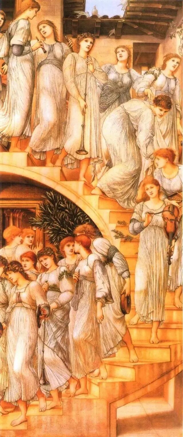 爱德华.伯恩·琼斯,一位30岁才成为画家的英国艺术家,他早年就读过神学院,因此他后来创作的人物形象都带有神学思想!他的创作风格受到拉斐尔前派画家但丁·加布里埃尔·罗塞蒂的影响,他们是好朋友!