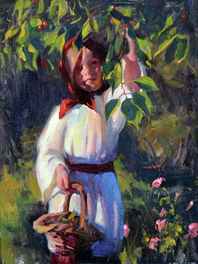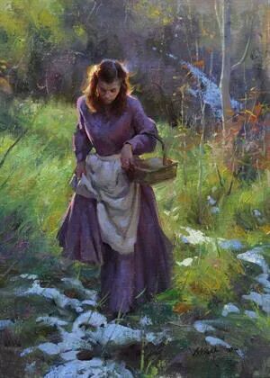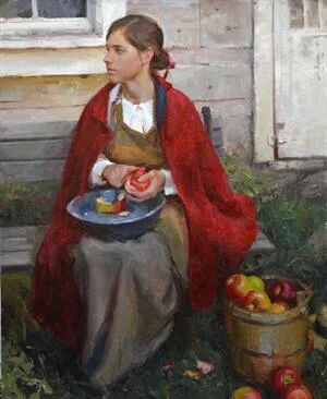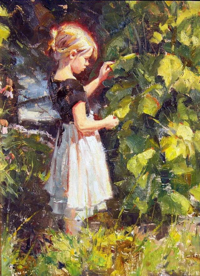 画家无比热爱这种修篱种菊的田园风光,因此也成了他源源不断产生灵感的地方,在他画笔下的儿童纯真可爱,童趣童真,童心闪烁,令人无比怀念曾经的童年时光!而在他画笔下的乡村姑娘,则是显得勤劳而朴实无华!