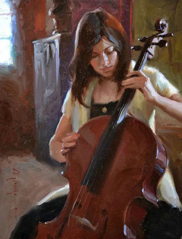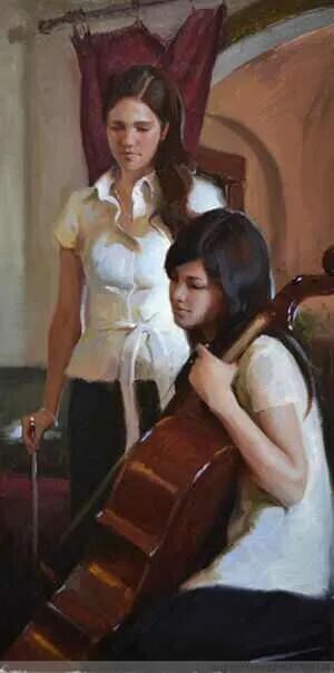 音乐也是解压的一种方式,画家刻画了两位姑娘弹奏时心醉神迷的神态,也让观者通过画布,仿佛听到了一阵阵舒缓悠扬的旋律,仿佛是天籁之音,令人陶醉!