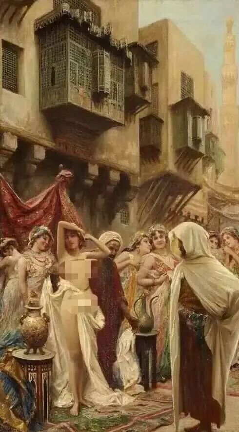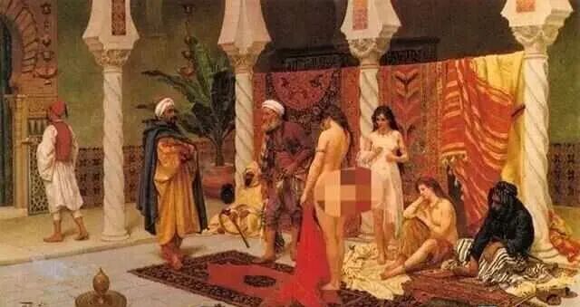 法国新古典主义画家杰罗姆去中东旅行时所画下的场景,女奴犹如牲畜!