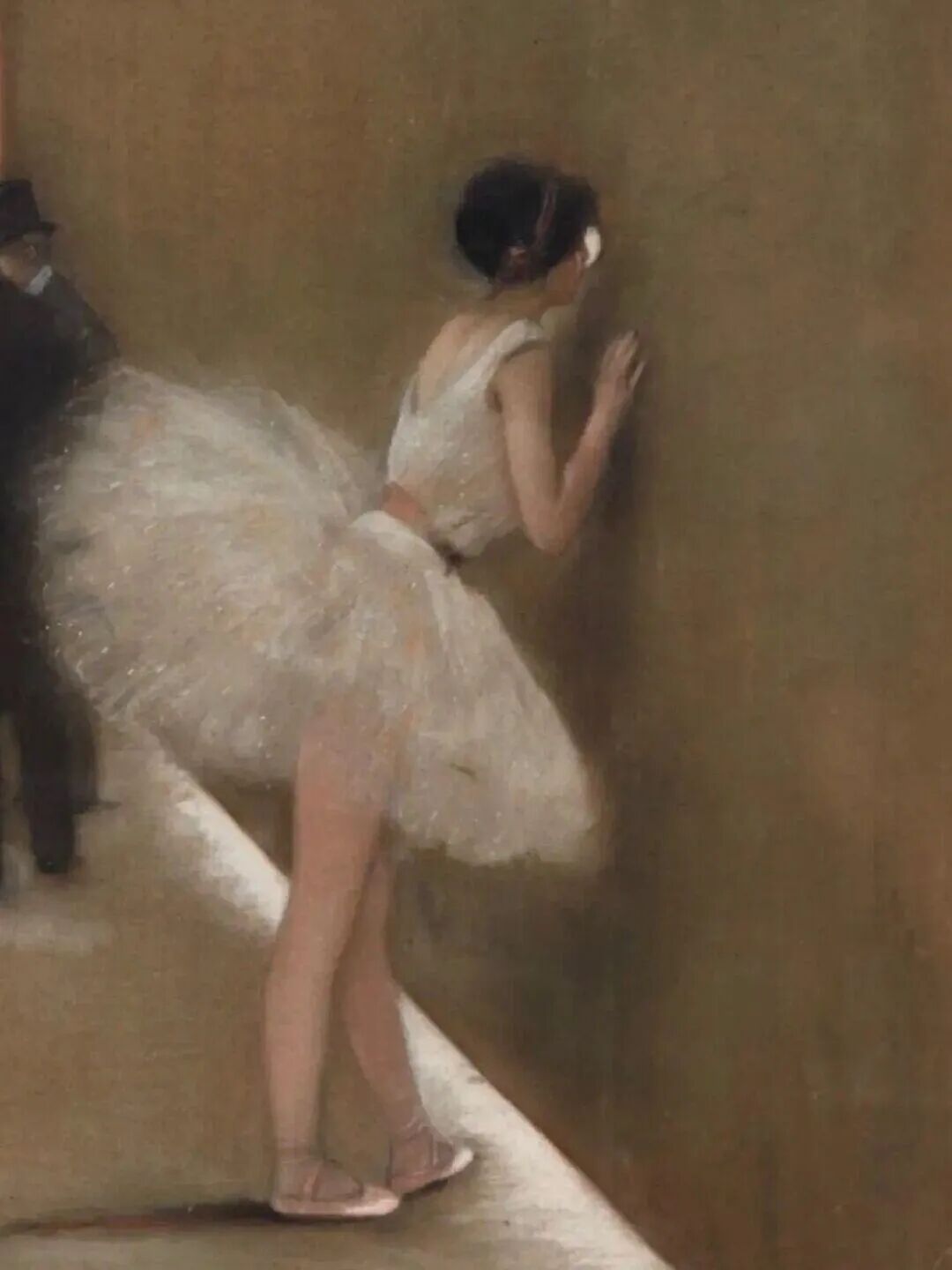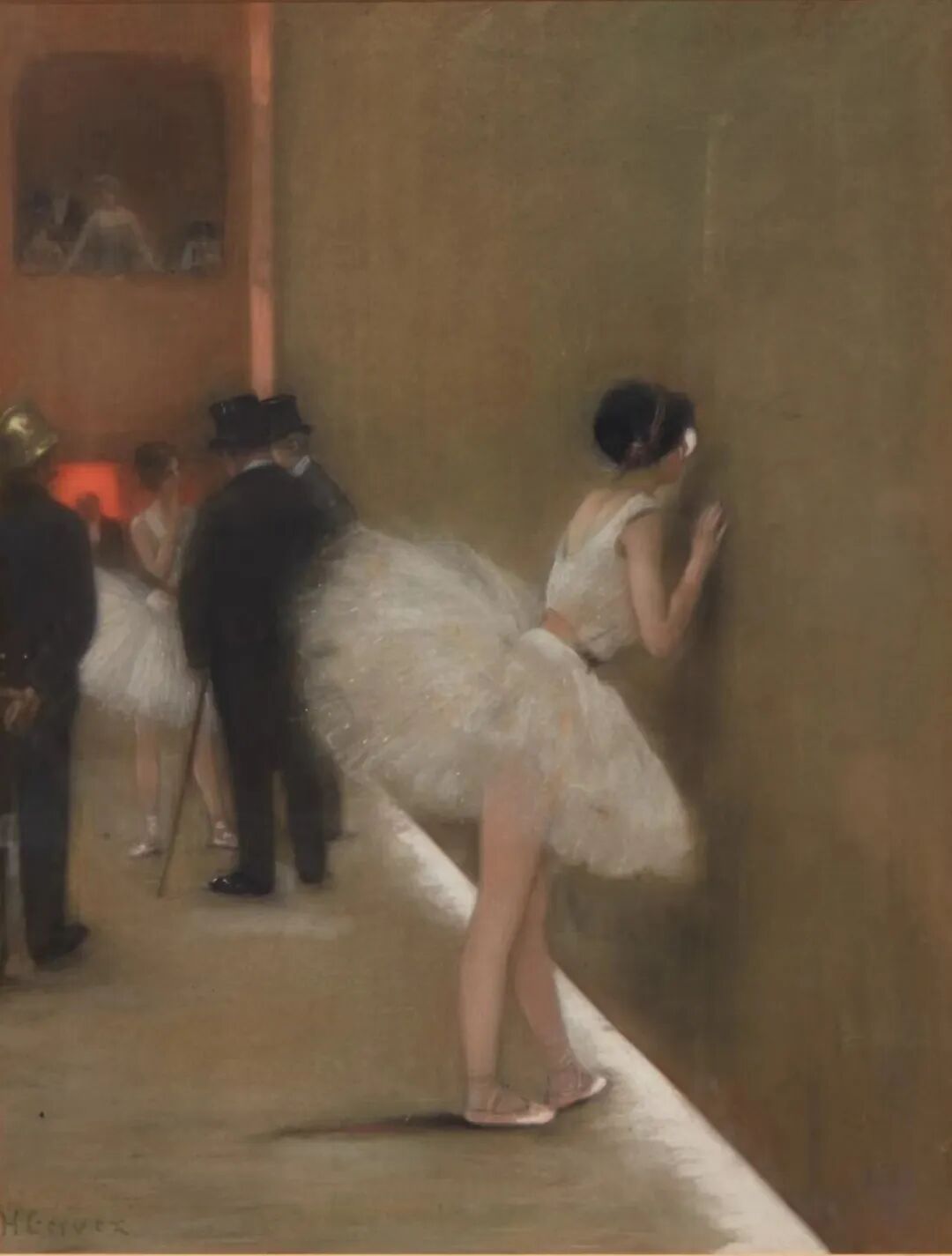 很多人熟悉德加画笔下的芭蕾舞舞者,但下面这位画家呢,其实就切入的深度来讲,他描绘的这幅后台舞者,更具现实性,也更能引发观者的联想!