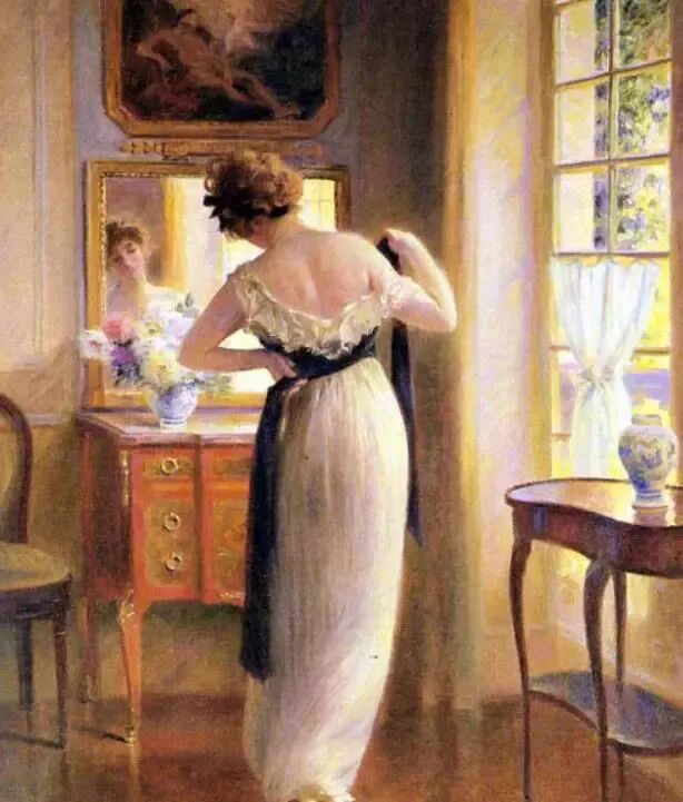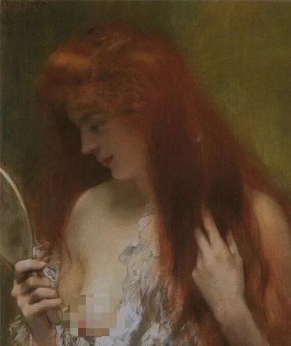 《照镜子的巴黎女郎》,女人的魅力,就是这么照出来的,不信你照照,肯定越变越美!因为照了,你就会发现自身的瑕疵和缺憾,然后想方设法地改善,去淡化,那不就越变越漂亮了!