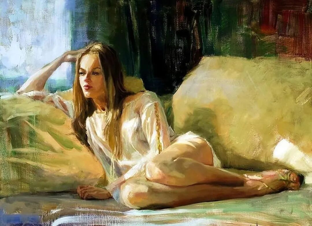 莫纳霍夫画笔下的人物形象有时很安静,散发出优雅知性的魅力!也许是激情之后,或者是经历过人世间风风雨雨之后,才会如此心平气和,波澜不惊吧!