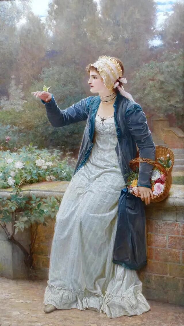 查尔斯.爱德华.佩鲁吉尼Charles Edward Perugini,一位出生于意大利的浪漫主义英国画家。上面这幅就是他的自画像,看起来很秀气腼腆,一看就是感情丰富,情感细腻的小伙子!