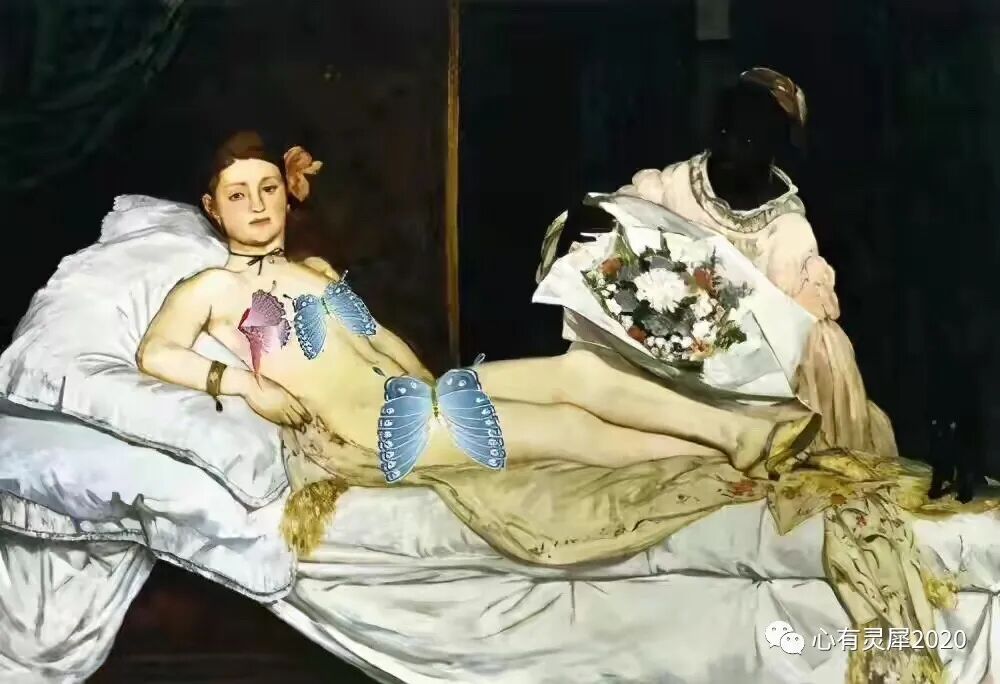 更具辛辣讽刺的是,画中女孩是一个在人们心目中道德败坏的妓女啊,而奥林匹亚是多么神圣的女神,女神跟妓女混为一谈,那就大大刺激了一些道貌岸然者上流社会贵族的神经!在他们心目中,妓女是玩物,是下贱的,不上台面的,虽然他们经常出入这种场所!