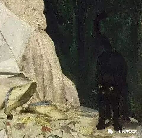 还有一个原因就是这幅画反映出了当时的社会现实,所以它一出世就遭到了保守势力的强烈抨击!黑猫在西方通常被认为是邪恶和不幸的象征,在神话故事中黑猫总是和邪恶的女巫形影不离,那黑猫从面前跑过,也许会给人带来不幸。