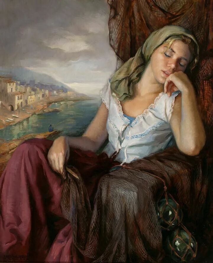 弗朗西斯科·里贝拉·戈麦斯,一位西班牙画家,出生于马德里!一位对水情有独钟,擅长刻画人物眼神的画家!如母亲望向幼子,丈夫望向妻子,或者是女人情绪变化时,或者是享受田园风光的惬意时光时!