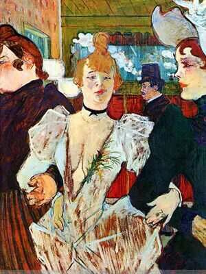 图卢兹创作的两幅画《红磨坊舞会》和《拉姑柳在她的妹妹及一个舞女中间》,这位画家画笔下的舞女,一看就知道出身于底层,比较放荡不羁!