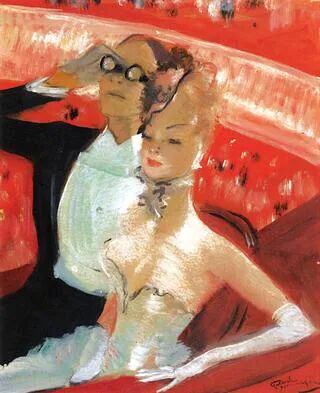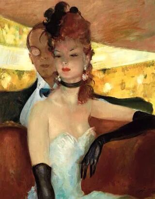 《歌剧院包厢》,包厢里的女人既妩媚又妖娆,坐在男人旁边如此摇曳生姿,非常适合彼此谈谈情说说爱!