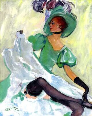 画家画笔下的每一位巴黎女性,犹如举办时装秀,欣赏她们如走马灯一样登台亮相,五彩缤纷花枝招展,小编看得眼花缭乱、扑簌迷离!