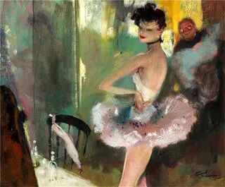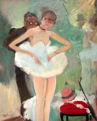 成为一名成功的芭蕾舞演员,除了靠舞技,其他的就是要靠如何取悦老板了!就像有些影星,要出道出名,那也得和导演等搞好关系,这叫行业的游戏规则!估计画中这位初出茅庐的芭蕾舞演员还不太懂,有点扭扭捏捏!
