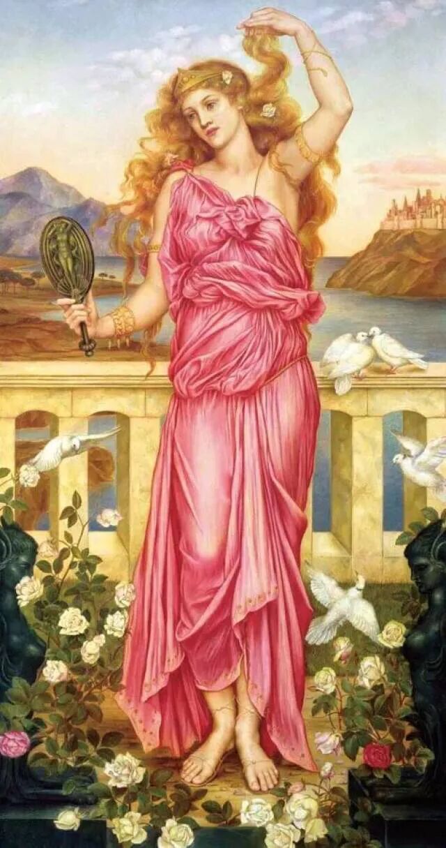 画家利用这面镜子,辉映着她的绝世容颜,也折射她身后面特洛伊的城墙和山川河流,寓意着这个女子,有颠覆江山的魅力!