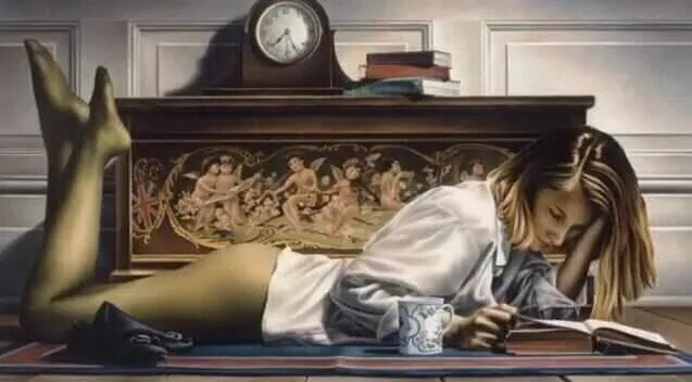 穿高跟鞋👠实在太累,小编已经不知有多少年不穿了!画中的这位女郎估计也是,都把一只鞋子放在凳子上了,也许她此时此刻正在掩面而泣,因为实在太疲惫了!