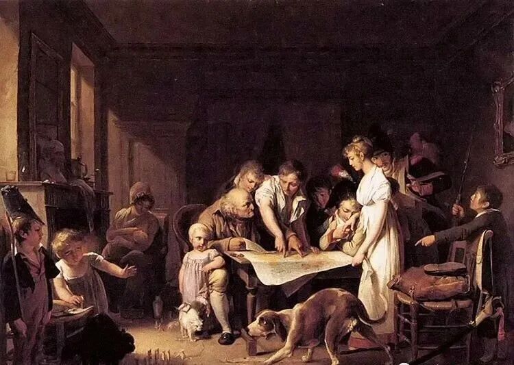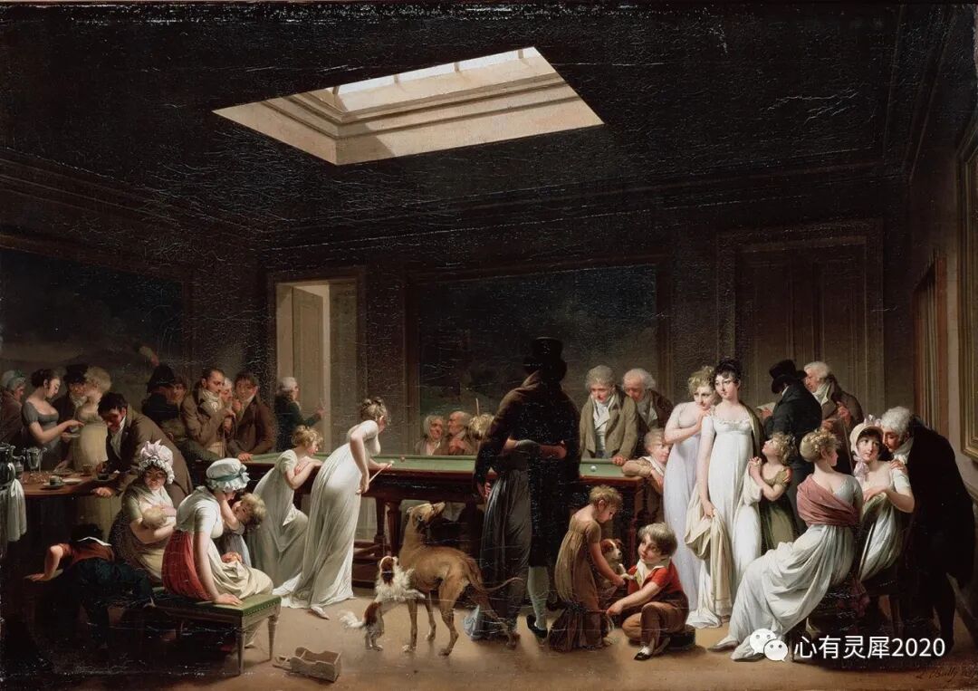 他最著名的一幅风俗画就是这幅《桌球》,画幅虽小,场景很大,在一张桌球台前聚集了几十个人,有妇女儿童、男女老少,还有几只调皮的狗狗!此时此刻有打球的,有玩耍的,有交头接耳闲聊的,很嘈杂很热闹,这是当时典型的法国小市民阶层的平凡生活,却充满了欢声笑语!