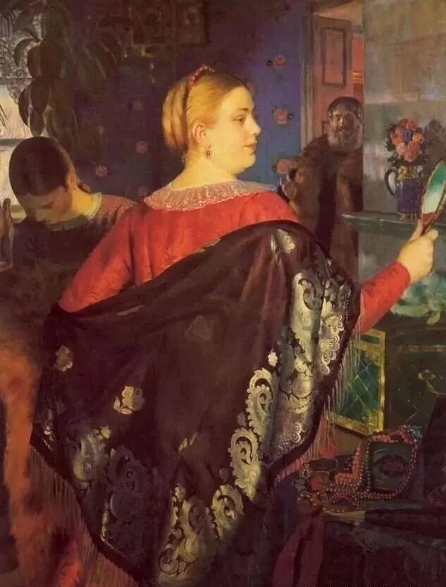 鲍里斯·库斯托季耶夫出生于阿斯特拉罕,在他幼年时父亲就去世了,他和母亲还有其他家庭成员一起租住在一幢富商的房子里!在他儿童时代,他亲眼目睹了丰富而多彩的商人生活方式,这些生活场景就出现在他的画作里!
