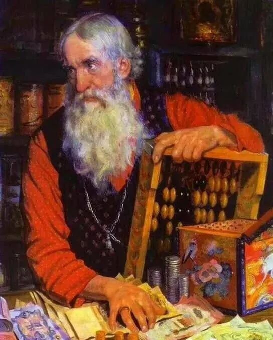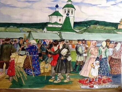 如《商人妻子的下午茶》,《莫斯科商人的聚餐》、《茶会》、《市集》、《美女》等,这些具有绚丽色彩装饰的作品,场面生动活泼有趣,给观赏者带来了很多快乐!