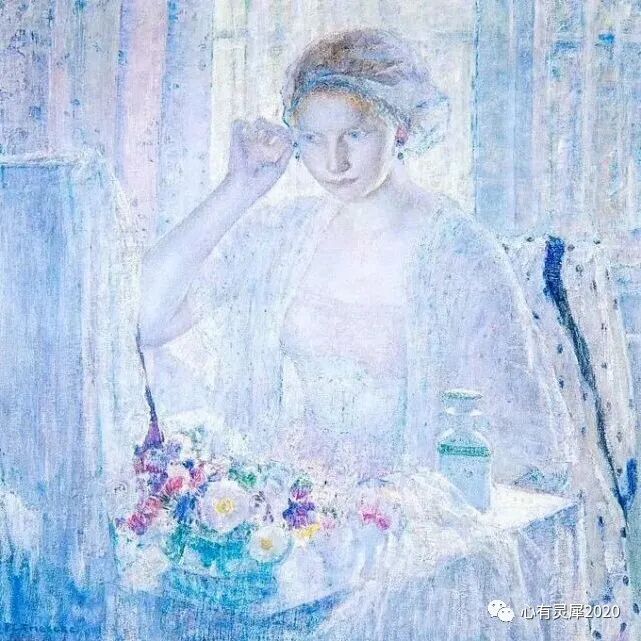 他在画作中,创造了一种以蓝色为主的宁静色调!在阳光下,在绿意盎然和鲜花绽放的环境中,描绘了一群年轻貌美女子的休闲度假时光,或者在家中做针线、梳妆打扮时、休息时的场景,渲染了一种岁月静好,现世安稳的美好氛围!