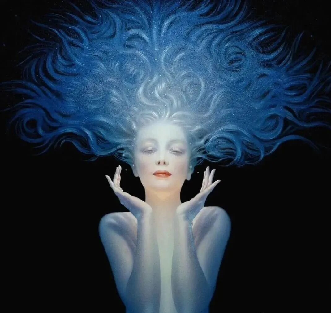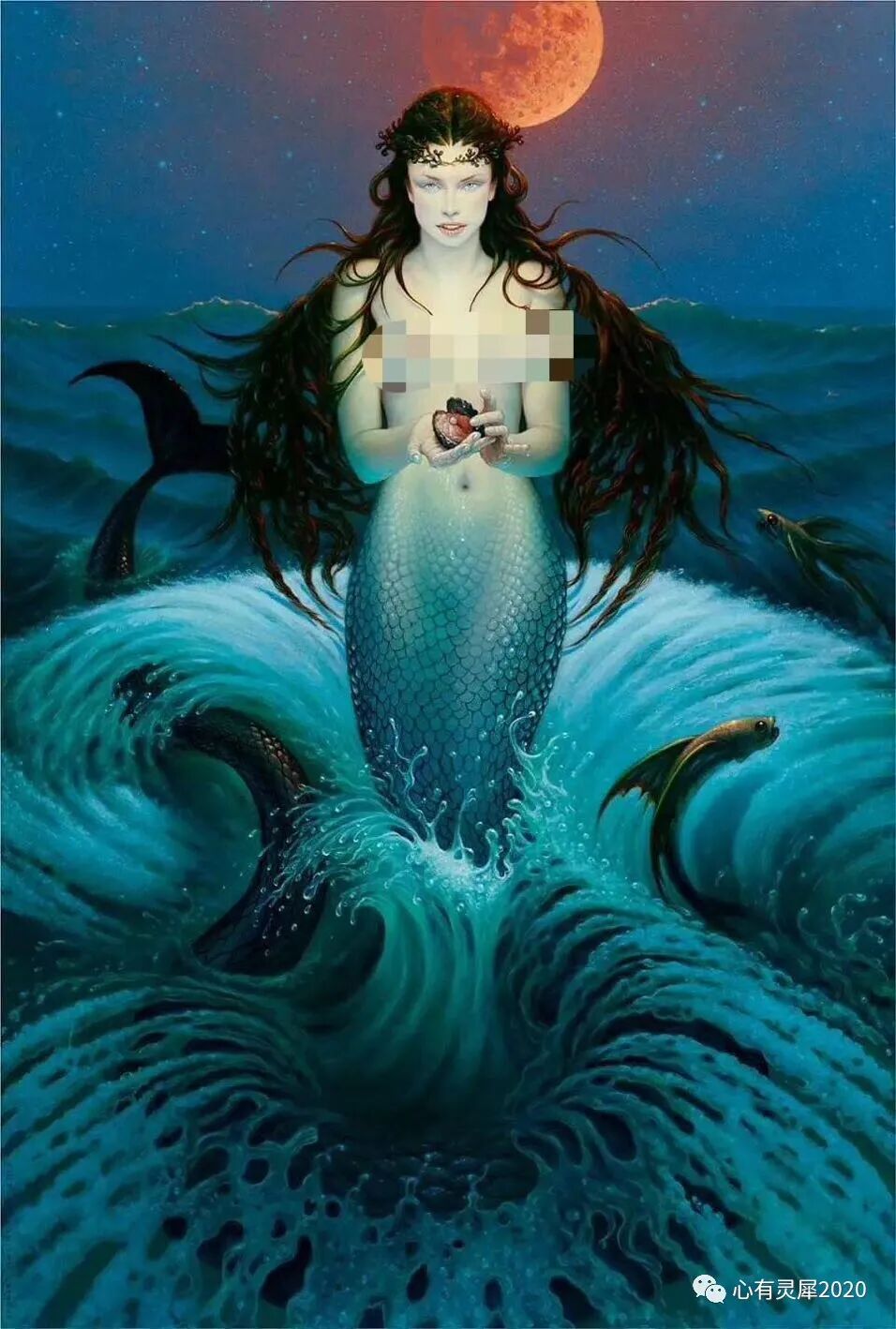 他的绘画风格可谓是匠心独具,都是色彩明亮的暖色调,给人带来温暖、积极的情绪!夕阳西下,欣赏这条美人鱼从波涛汹涌的海水中浮出水面,你心中会是何种情感呢!