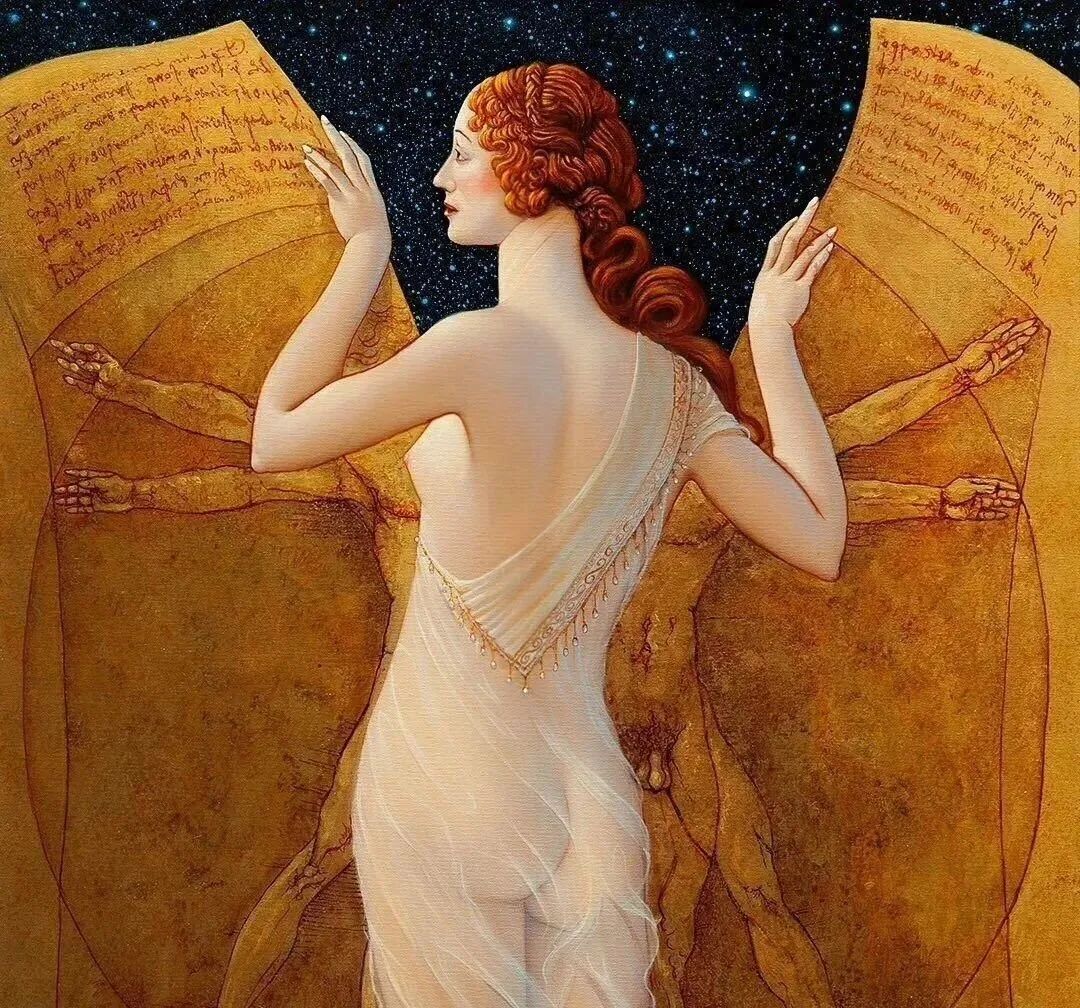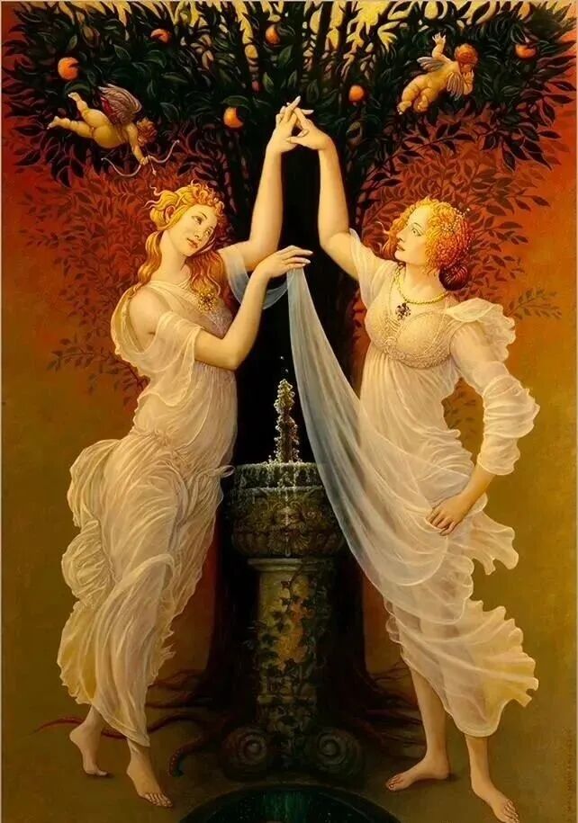 这幅油画突出了女性古典柔美的韵味,犹如上方飞翔的小天使一样不染纤尘!