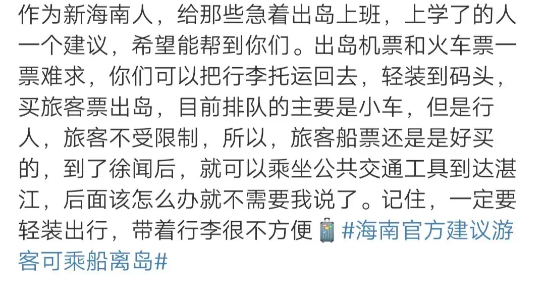但与此同时,他们也提出了三个解决方案,试图缓解游客的出行困境:协调航空公司,增加航班运力,让游客更快离岛;