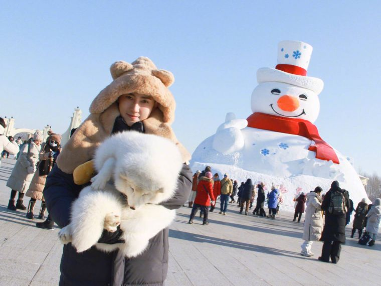 而在太阳岛雪博会,他更是与雪狐紧密合影,与大雪人亲密互动。