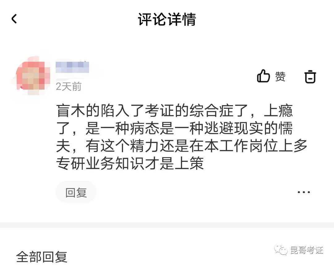 最近,网络有个人评论具有代表性:“考证的人是现实生活中的失败者”。这个观点,让生活中不堪重负的人,尤其是深陷中年危机的人,陷入了更深的迷茫。也透着心酸和无奈。