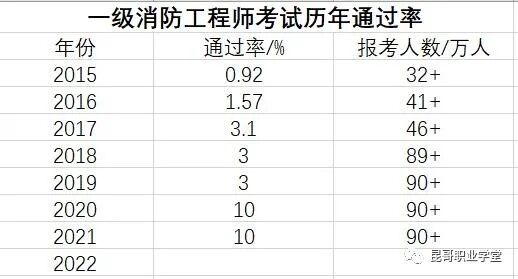 笔者认为,讨论难度意义不大,注册类的考试就是人难我难,人易我易,能拿到证的唯一办法就是能进到通过率的那个数字里边,拿到证书才作数。 既然考完了,眼下最重要的事是赶紧休息,陪陪家人,作为过来人,考消防过程的不容易自然深有体会。 可以说一人考证,全家辛苦一点也不过分,沉甸甸的证书,也有家人的一半。 这里道一声大家辛苦啦! 应当说这几年备考一级消防工程师的同学算幸运的,自2020年开始,通过率都稳定在10%。从通过率就可以看出,2020年之前消防工程师难度还是很大的。 题目我就不深入的琢磨了了,实在没时间,最近一直在搞英语和一级建造师,还要抽时间搞自媒体,时间自然非常紧张。