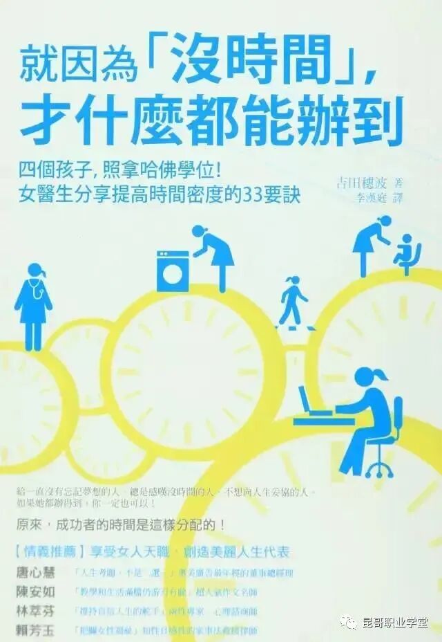 这是一个日本的女强人写的,她是一个医生,有4个孩子,平时工作很忙下班了以后要做家务要带孩子,同时他还要准备考试,最后还考上了哈佛大学。 相信她的经历对我们这些太多事情忙不过来的人来说,会比较有价值,这本书我在知乎上看了该书的总结,有兴趣的可以去知乎上看下,有非常值得我们参考的内容。