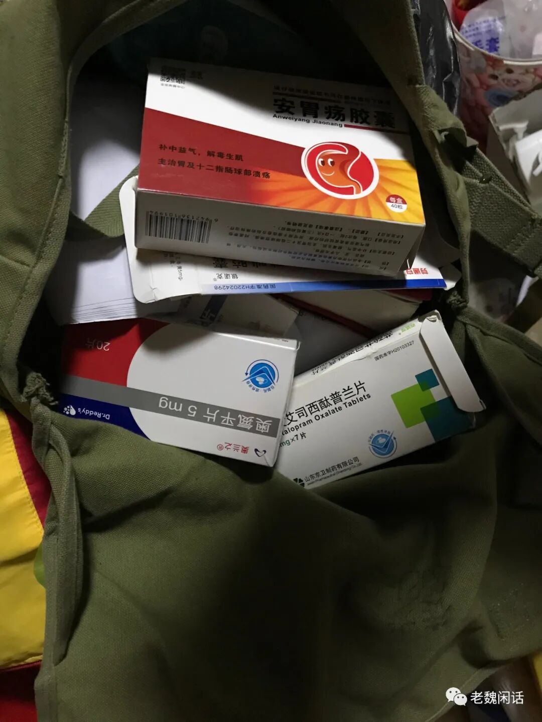 有些老同志走到哪包里都是药物,生命靠药物维持着。